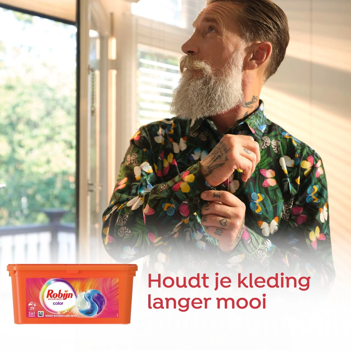 Robijn Color wasmiddelcapsules zijn speciaal ontwikkeld voor al je gekleurde was. Robijn 3-in-1 wascapsules zijn makkelijk in gebruik en houden je kleding lang mooi. De nieuwe capsules bevatten het unieke Robijn wasmiddel en wassen je kleding stralend schoon, zonder kleuren te vervagen. De was ruikt heerlijk, zoals je van Robijn gewend bent. Gebruik voor een optimaal resultaat in combinatie met Robijn Passiebloem & Bergamot wasverzachter. Laten we proberen meer te genieten in een wereld die maar doorraast en soms aan je voorbij vliegt. Juist van kleine dingen, zoals de geuren en kleuren die je in het dagelijks leven tegenkomt. Met Robijn kun je van dit soort momenten genieten.